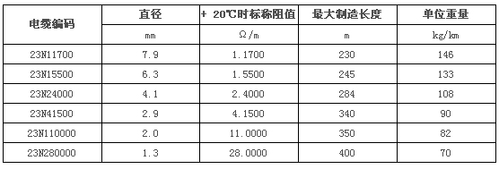 | 代號 | 芯線材質 | 電阻率Ωmm2/m |